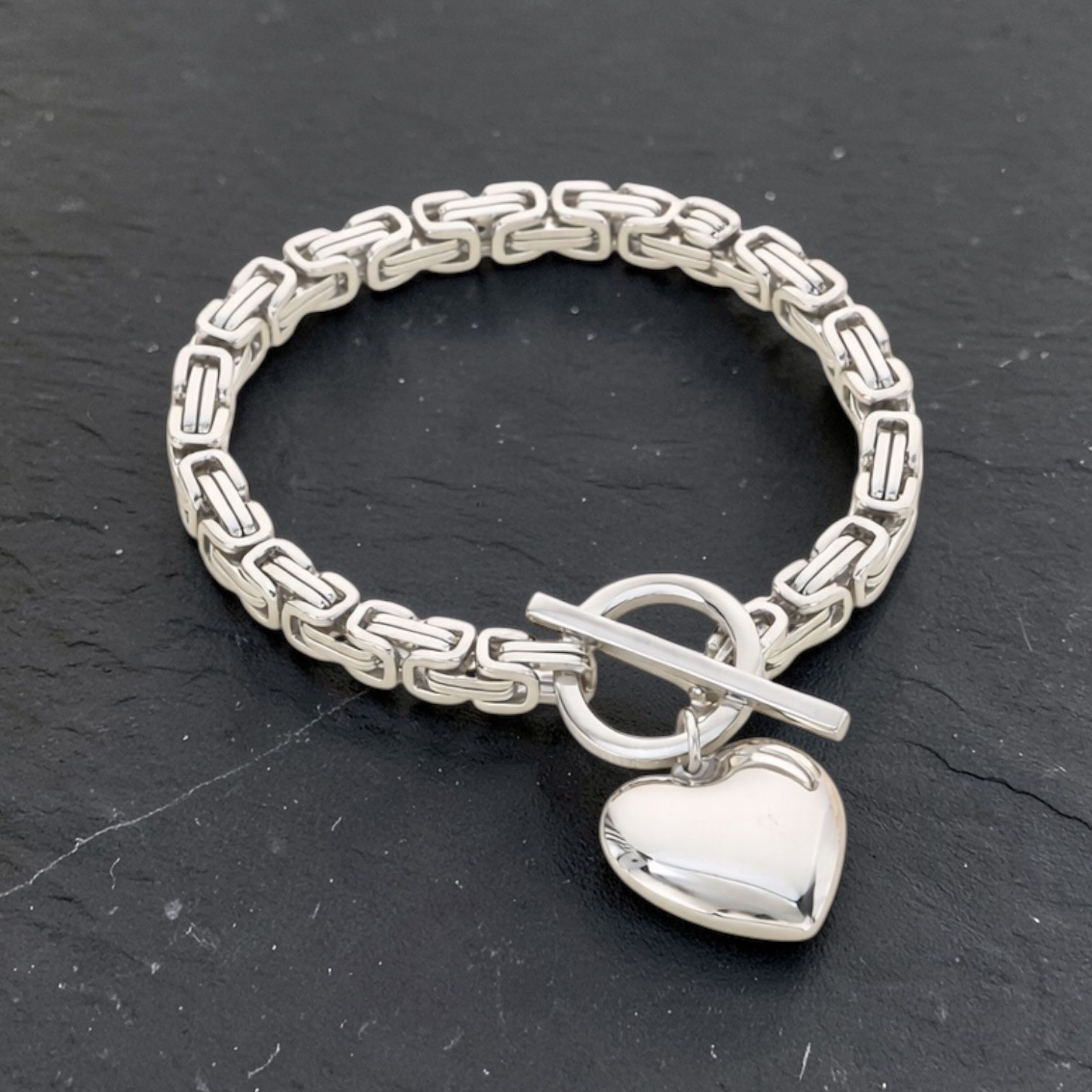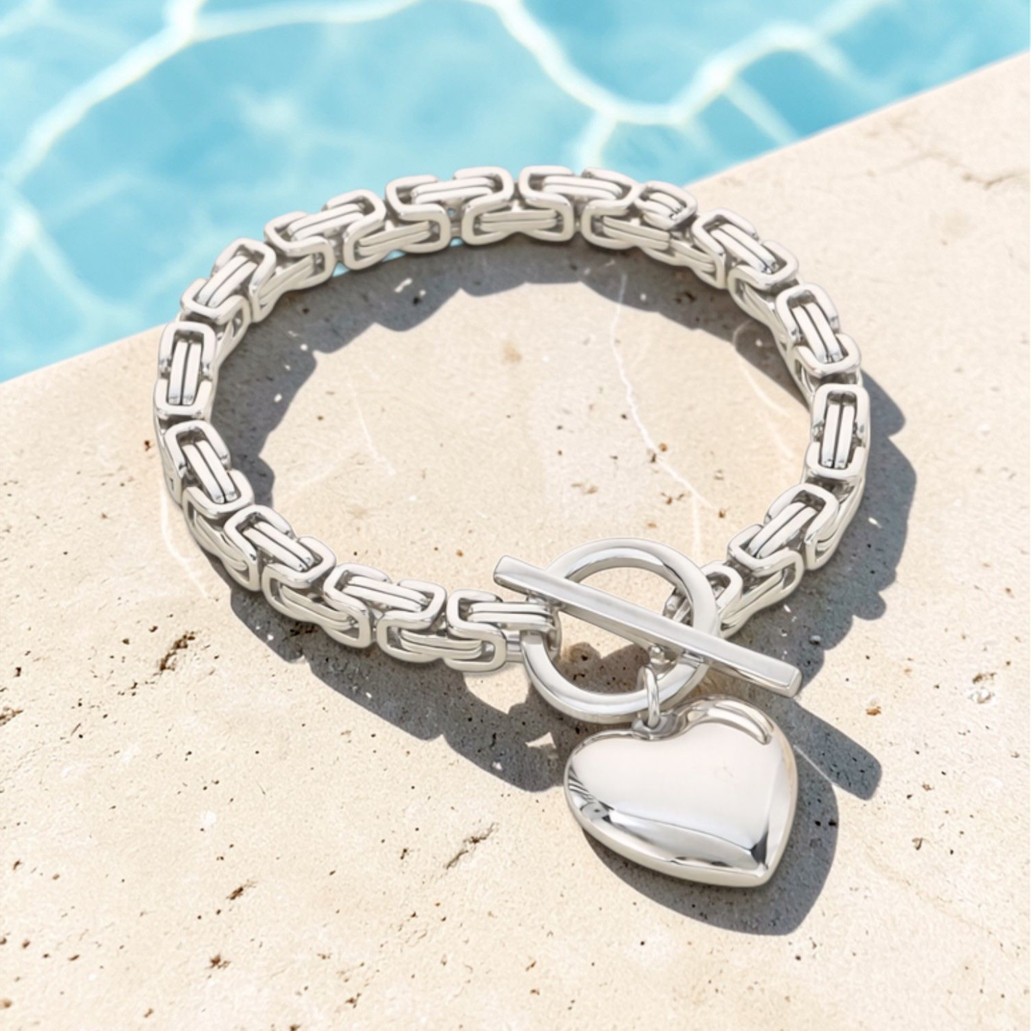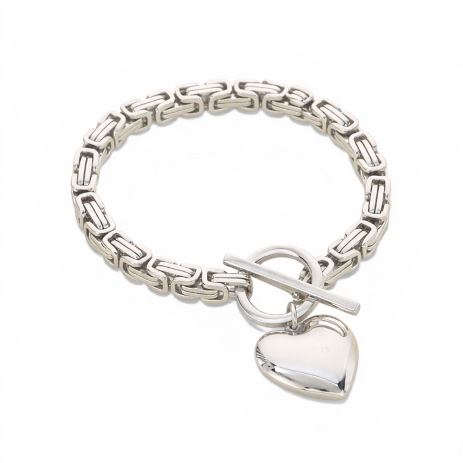 Bold chain links meet a polished heart charm in this statement bracelet. Featuring a luxe toggle clasp and high-shine finish, the Amara set is designed to turn heads — modern, powerful and unapologetically feminine.
