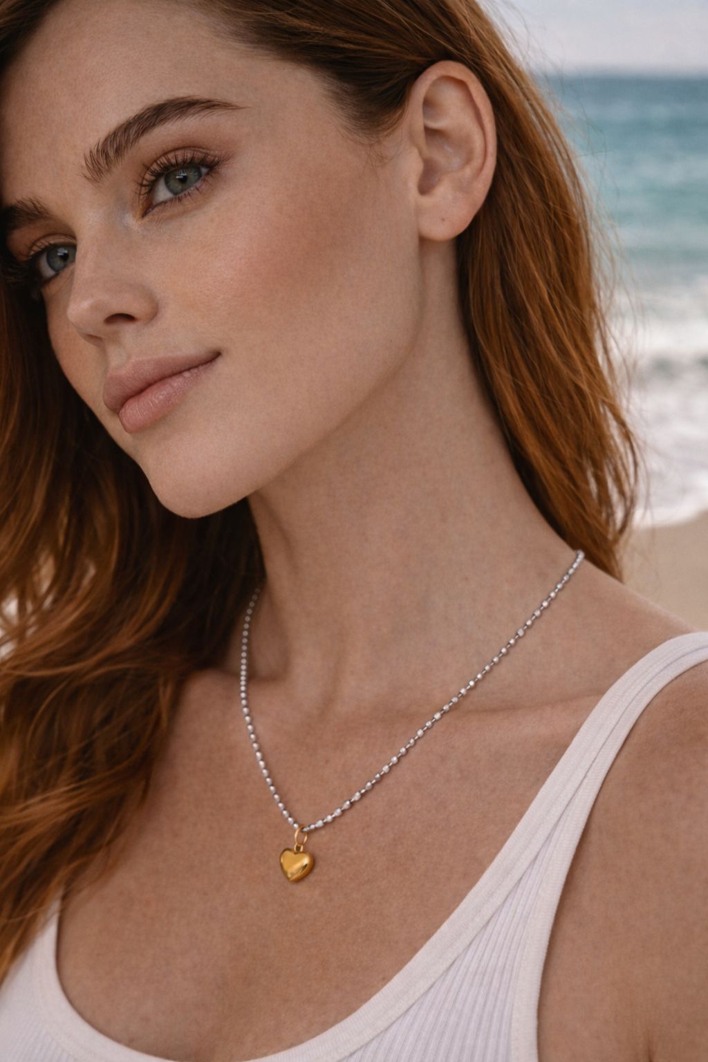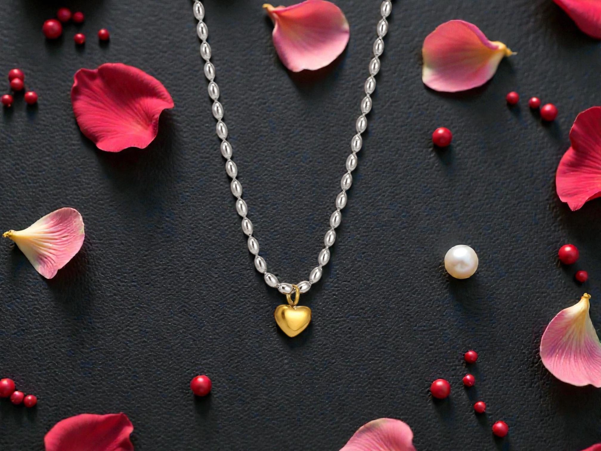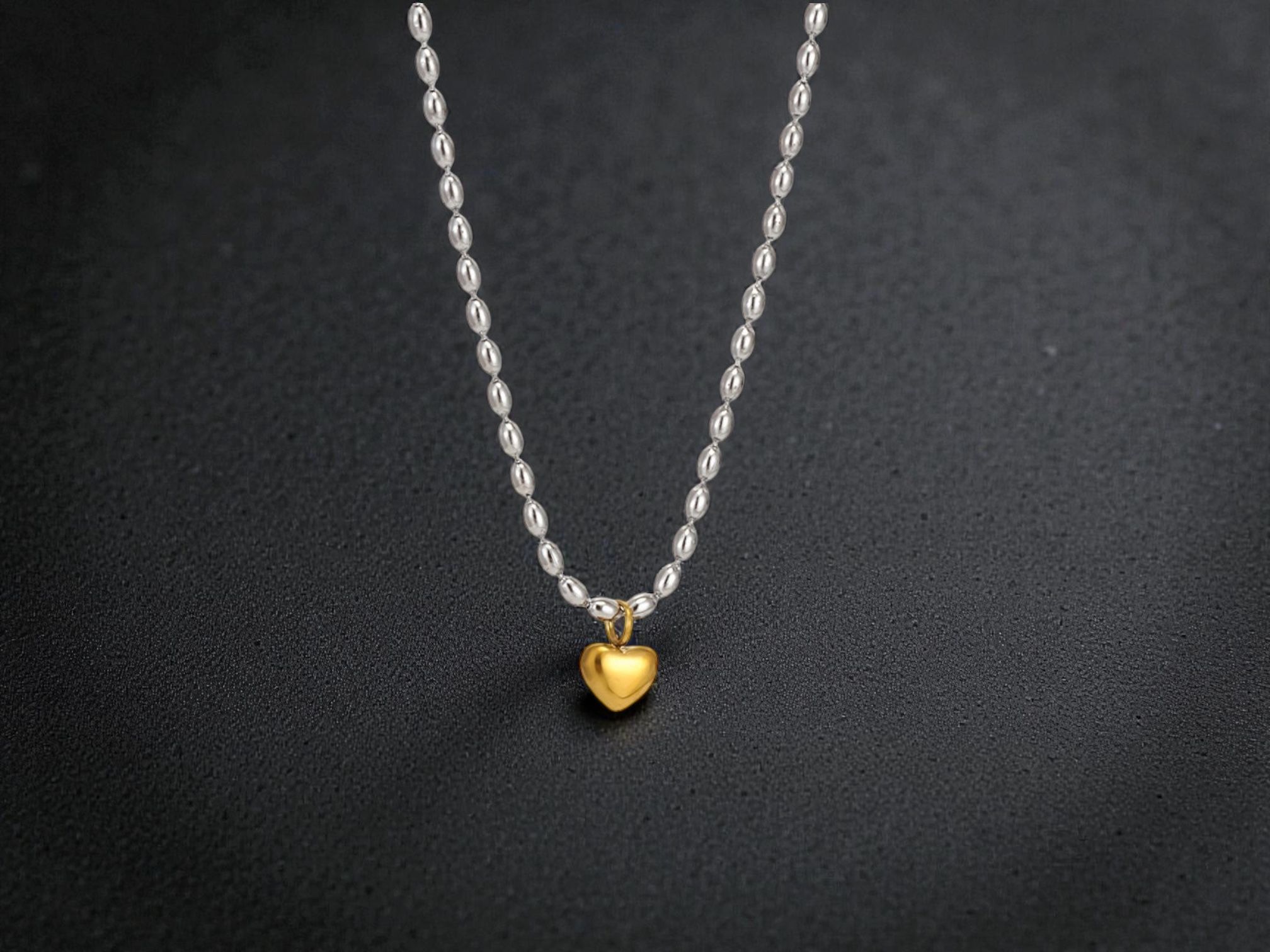 A delicate silver beaded chain paired with a polished gold heart charm for the perfect mixed-metal finish. Elegant, modern and effortlessly wearable, this timeless piece adds a soft touch of romance while layering beautifully with both gold and silver jewellery.