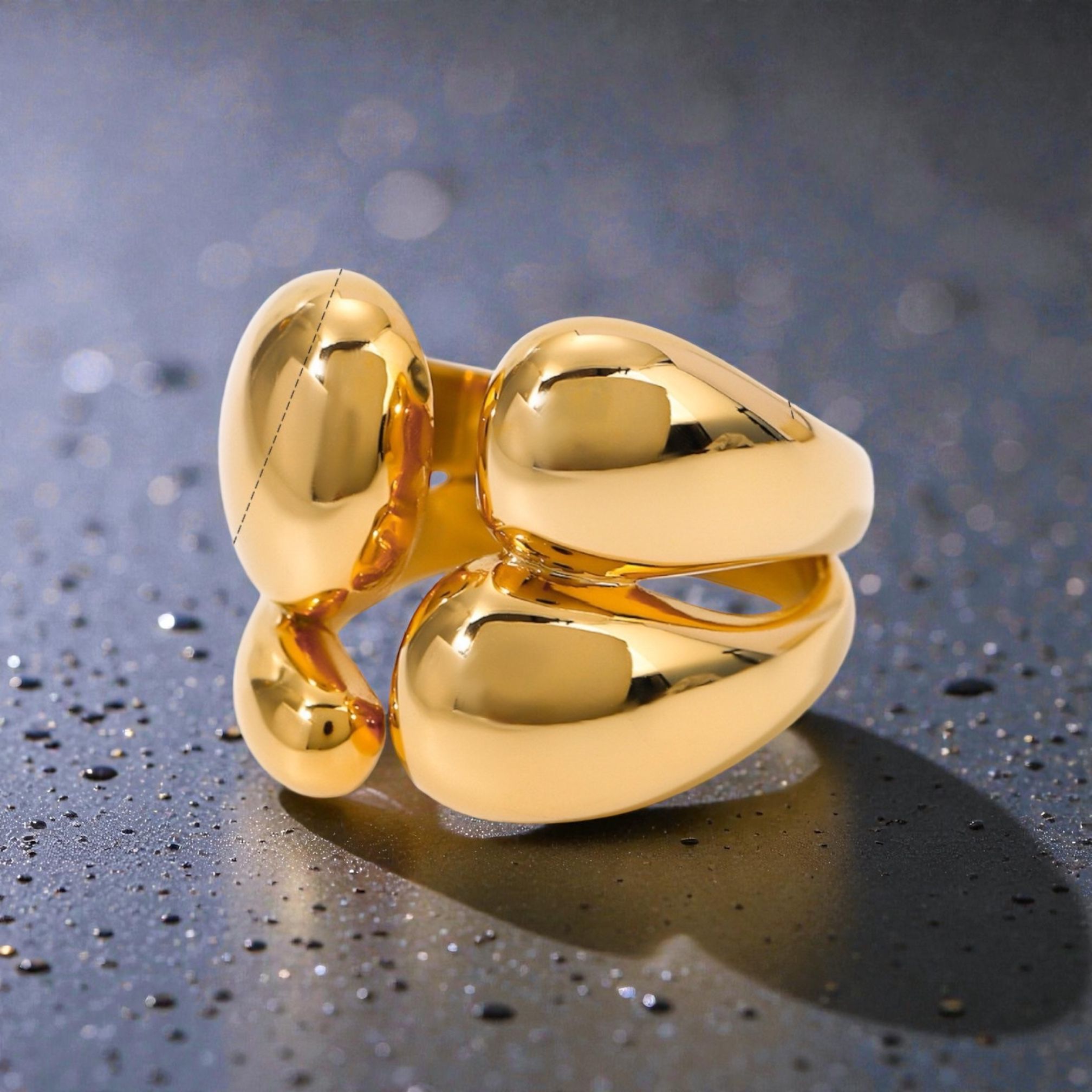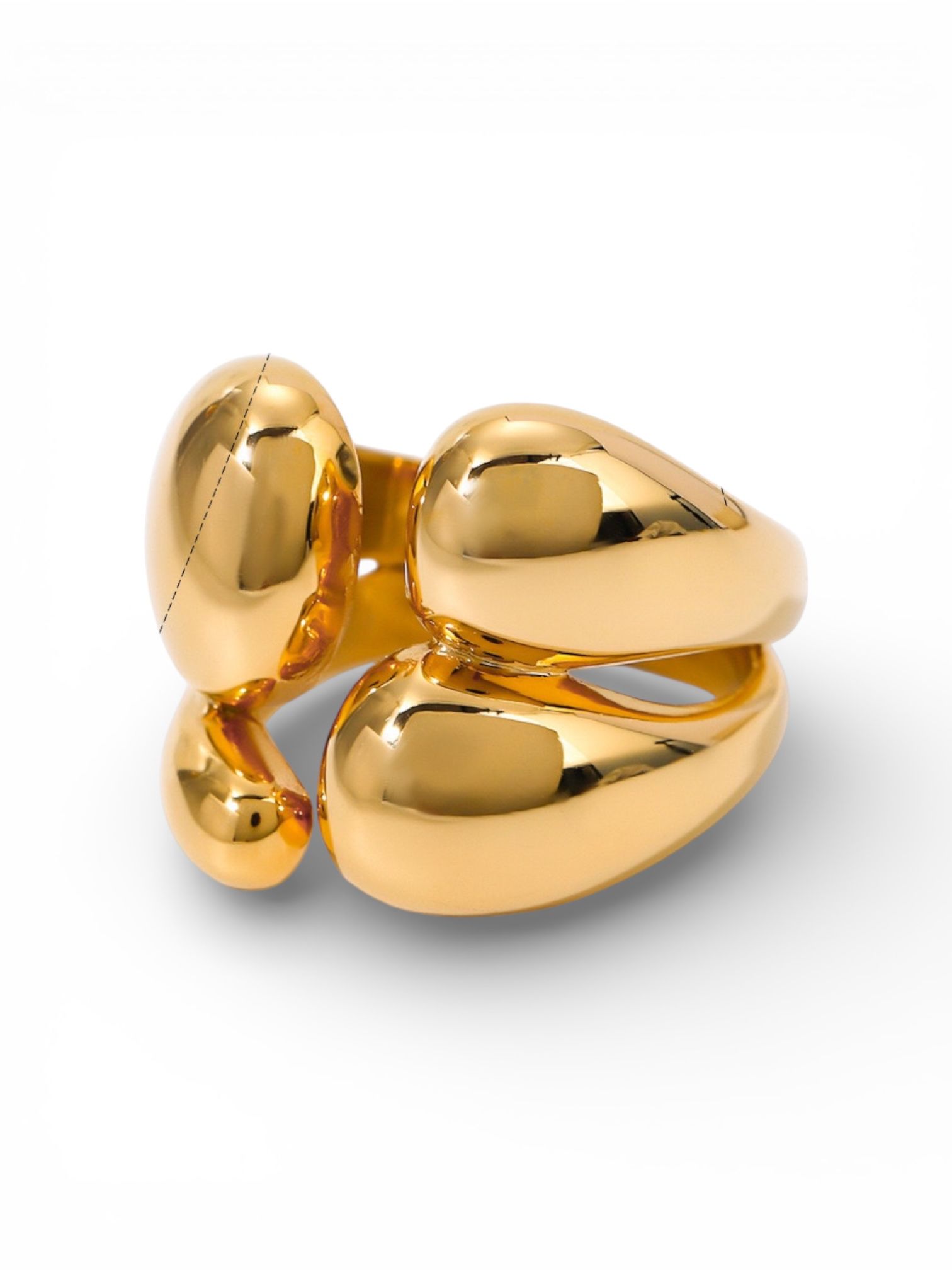 A fluid, double-curve gold ring with a soft, modern silhouette. Contemporary and eye-catching with a luxe feel.