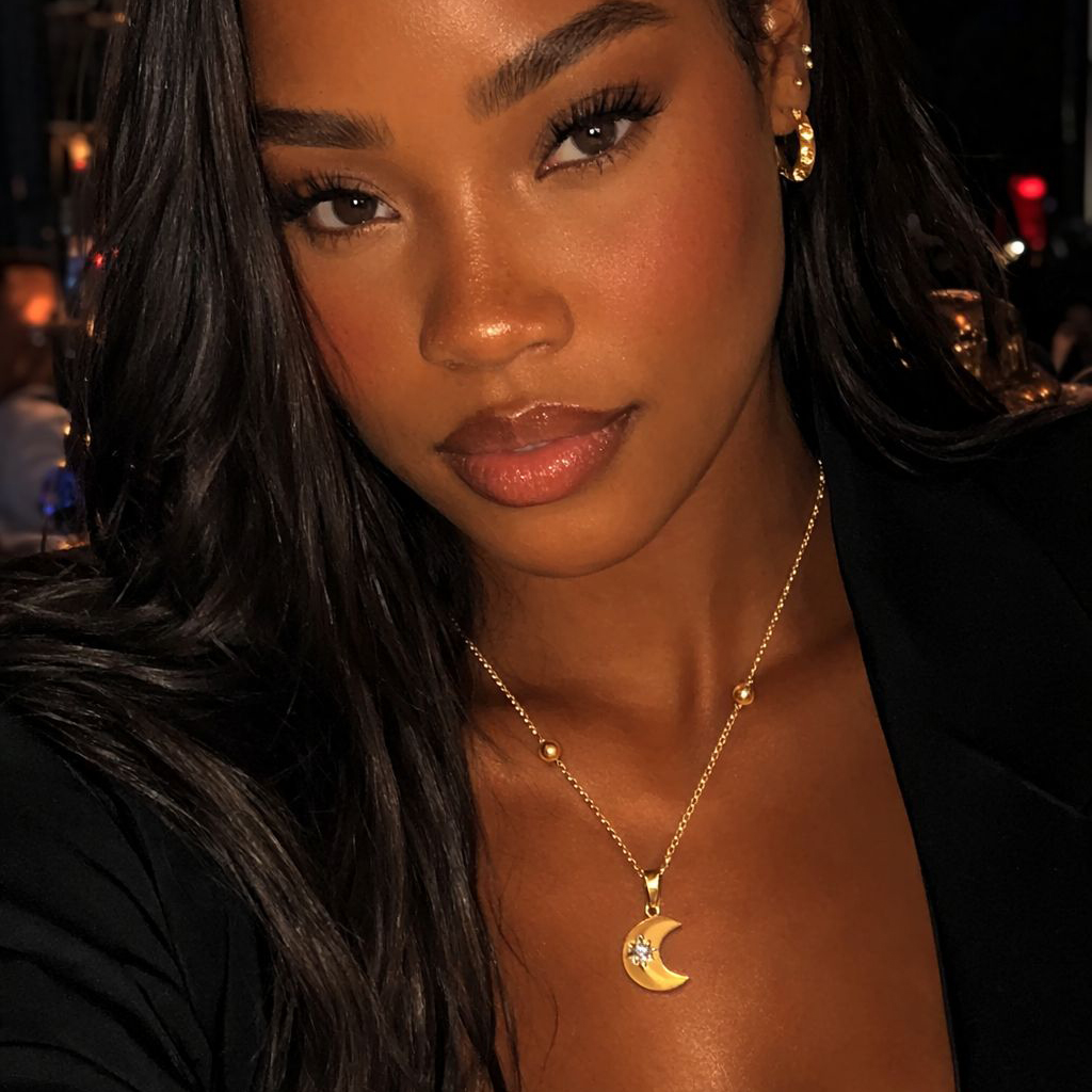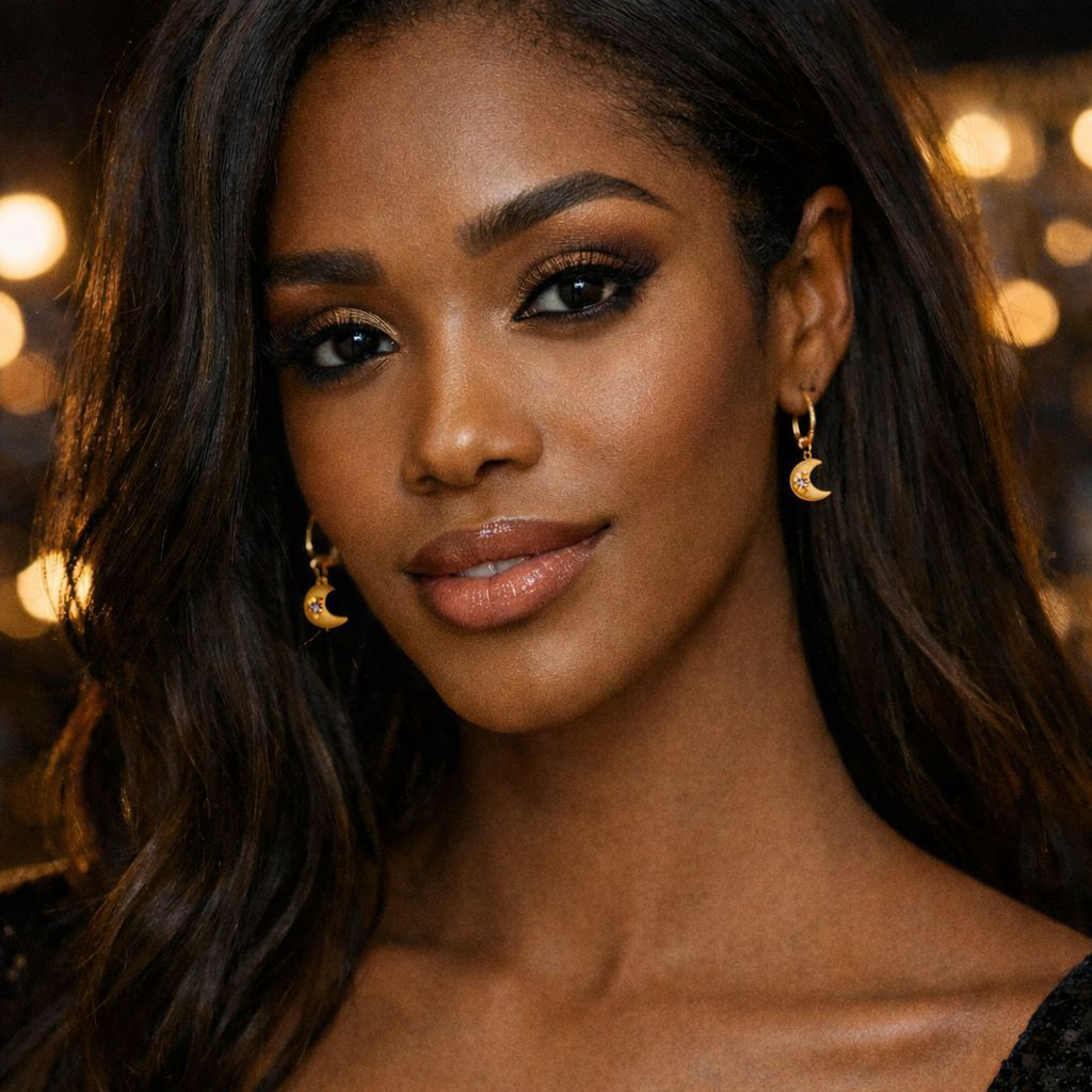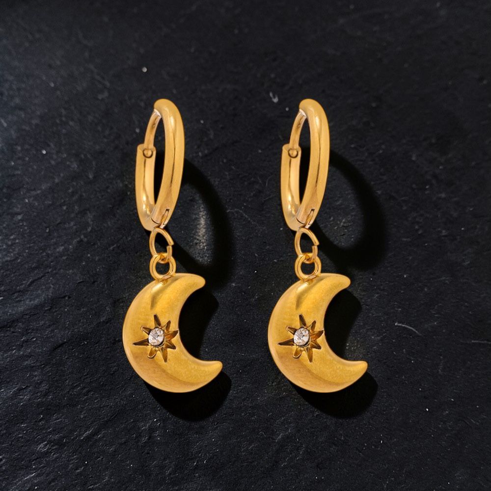 A radiant crescent moon design finished in rich gold with a delicate star-set crystal centre. Dreamy, modern and effortlessly elegant — the perfect celestial statement for day or night.