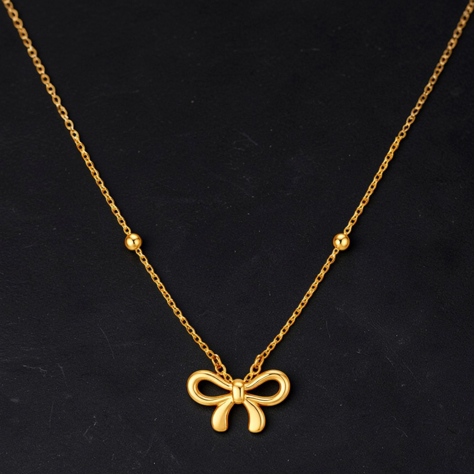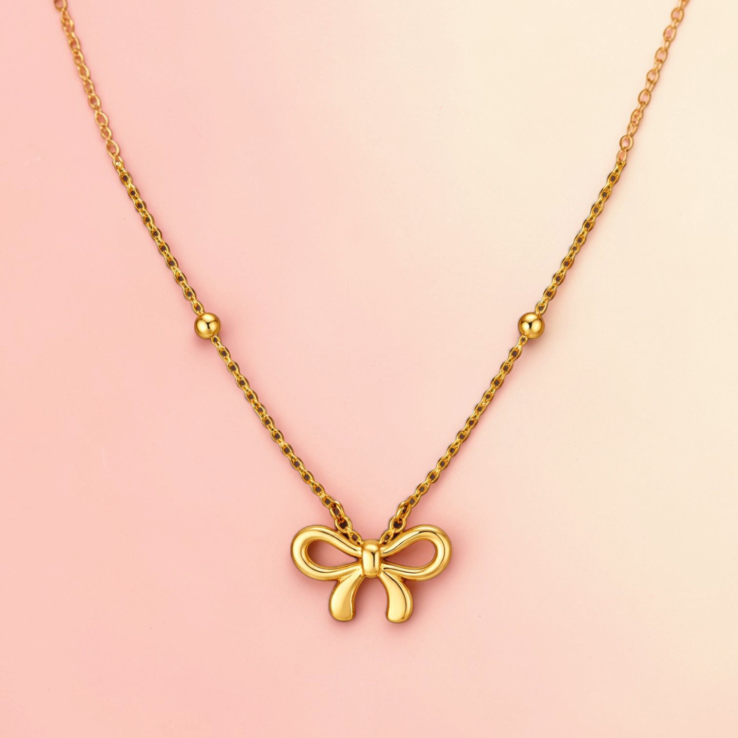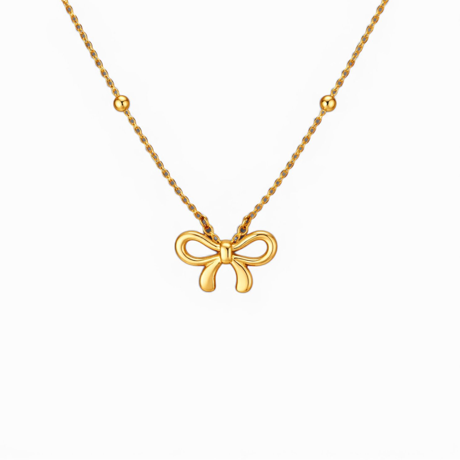 A delicate and feminine gold bow necklace, designed to add a soft, romantic touch to any look.