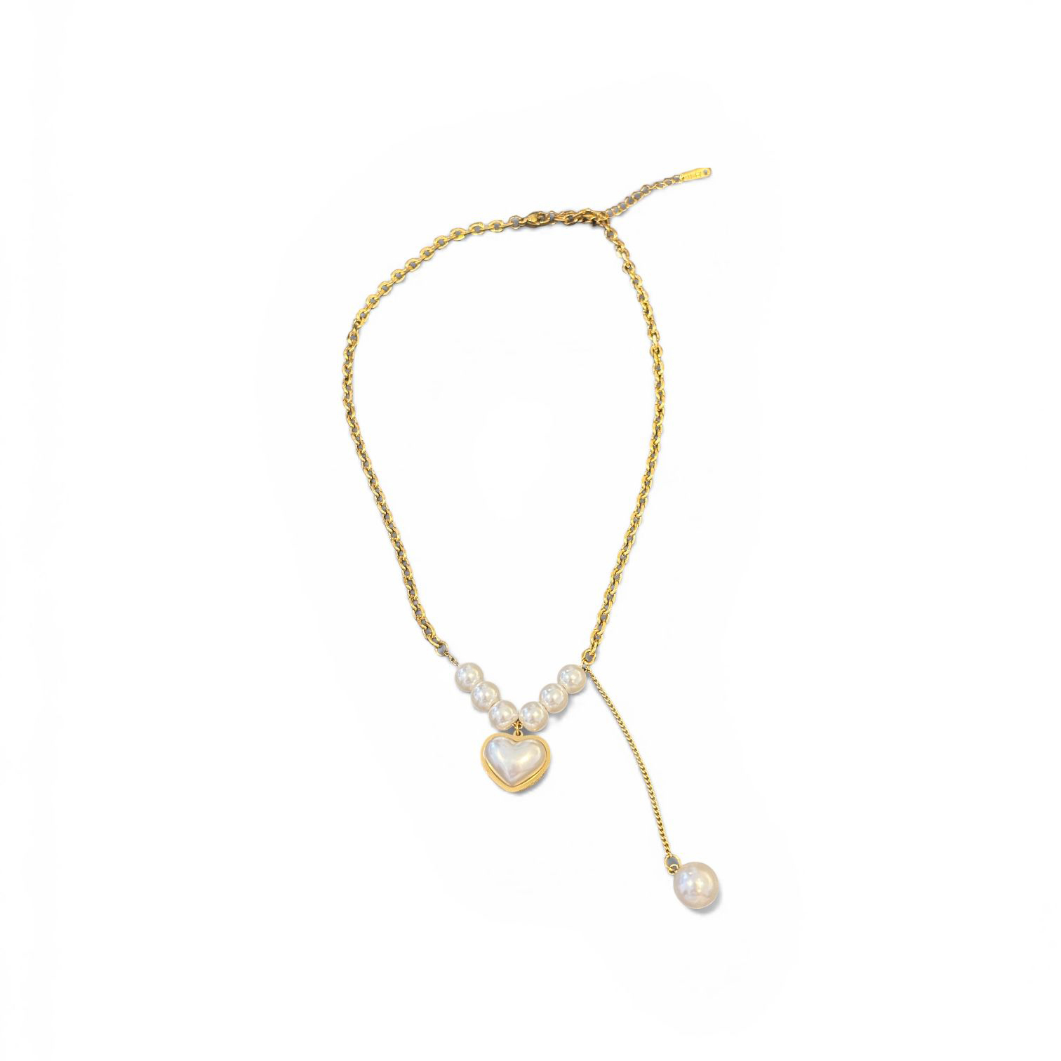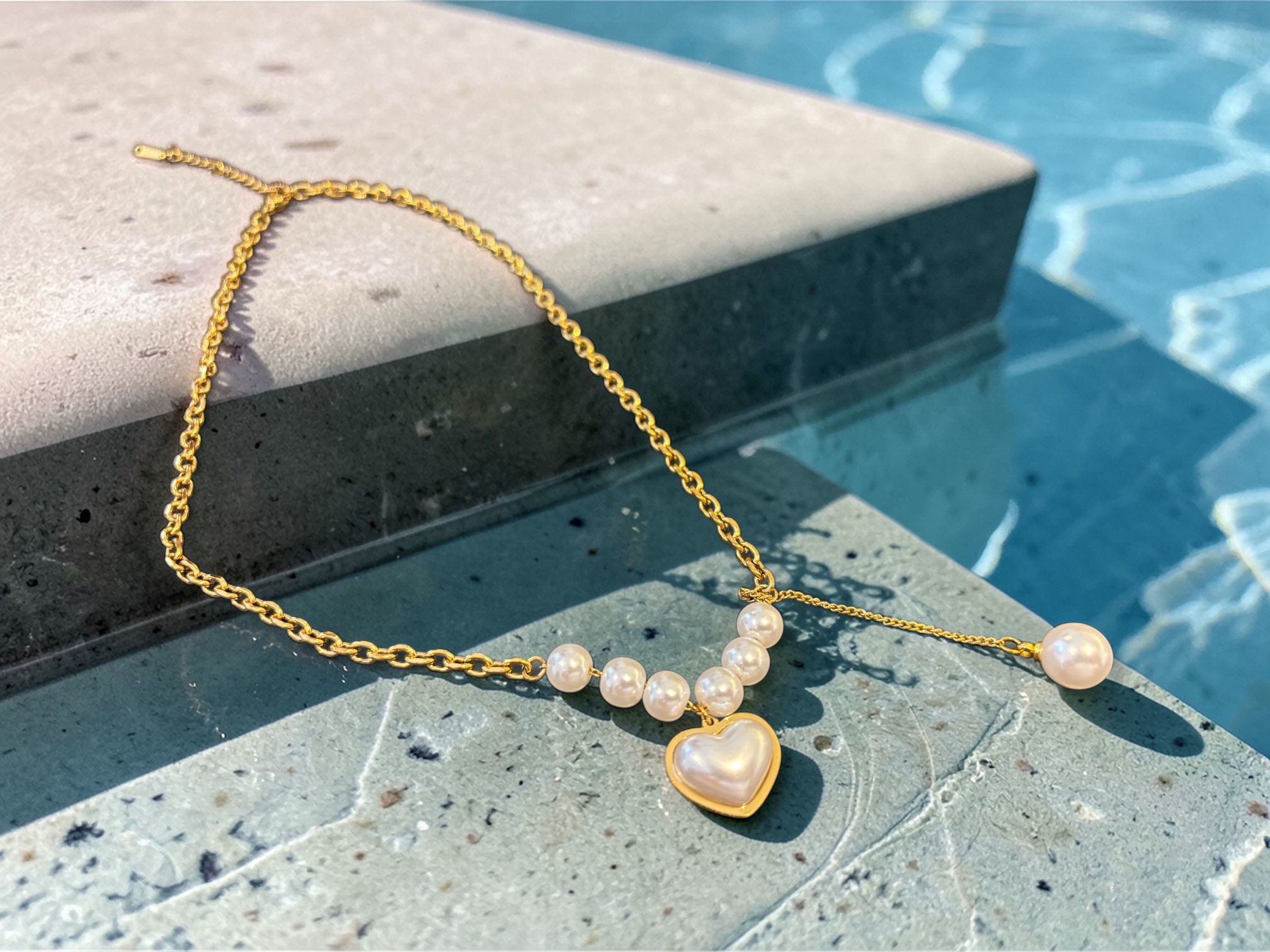 Delicate, feminine, and effortlessly radiant — this pearl heart necklace is designed to capture the essence of modern romance. Featuring a fine gold chain accented with soft, luminous pearls, the design draws the eye to a glowing heart charm that sits beautifully at the centre.