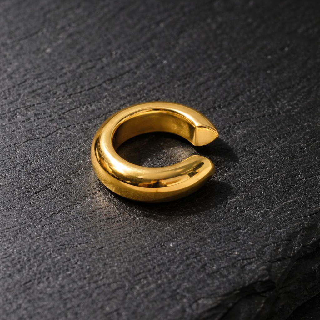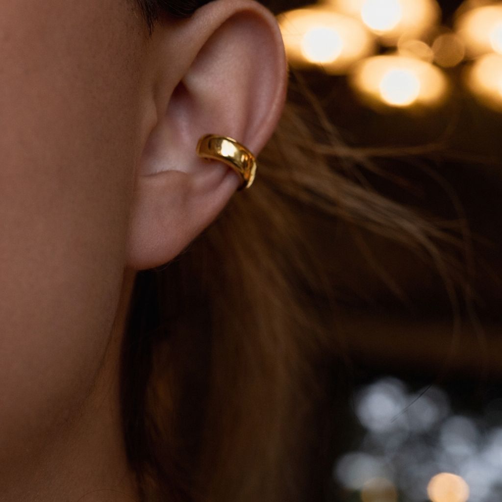 A bold yet timeless plain gold ear cuff designed to elevate any ear stack effortlessly. Crafted in a smooth, high-polish finish, The Luxe Curve Cuff features a thick, rounded silhouette that hugs the ear with a modern sculptural feel.