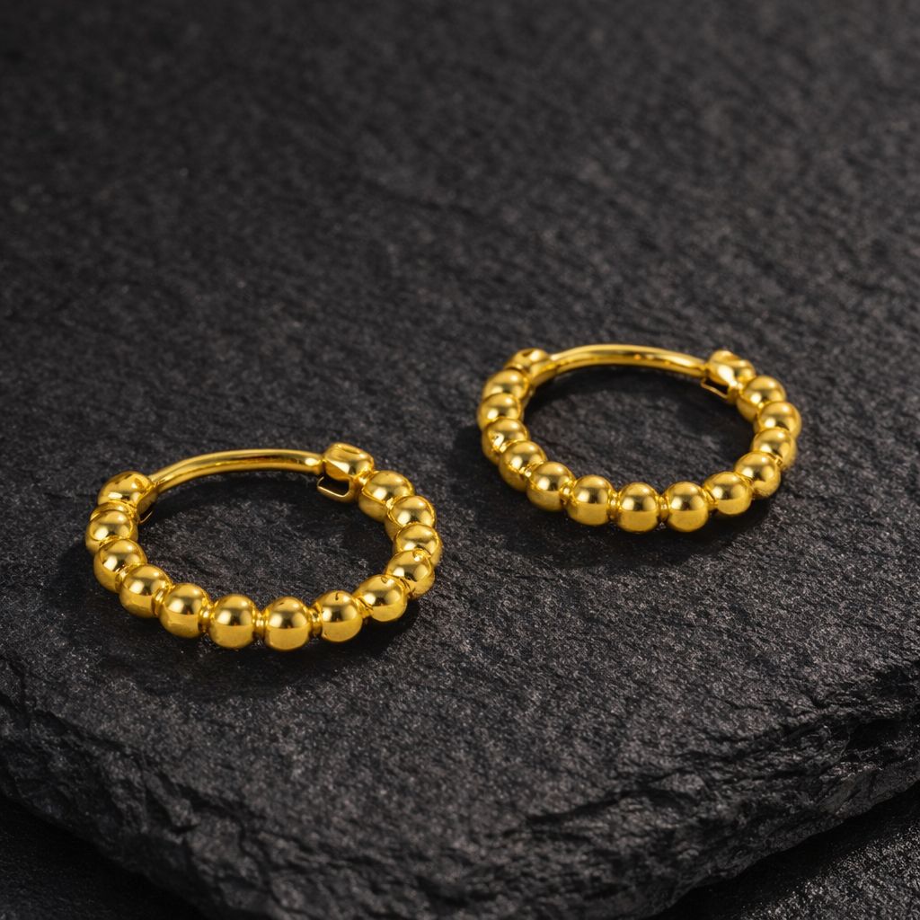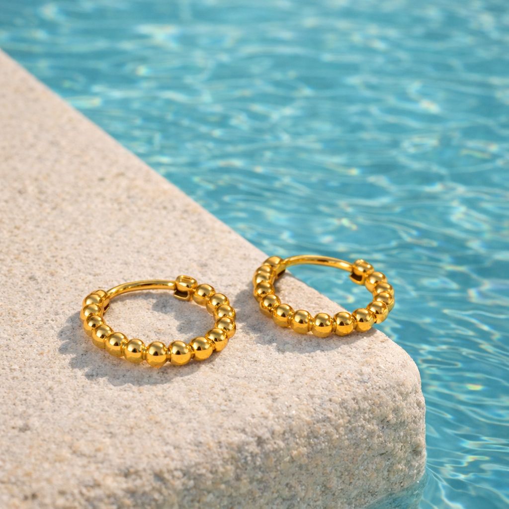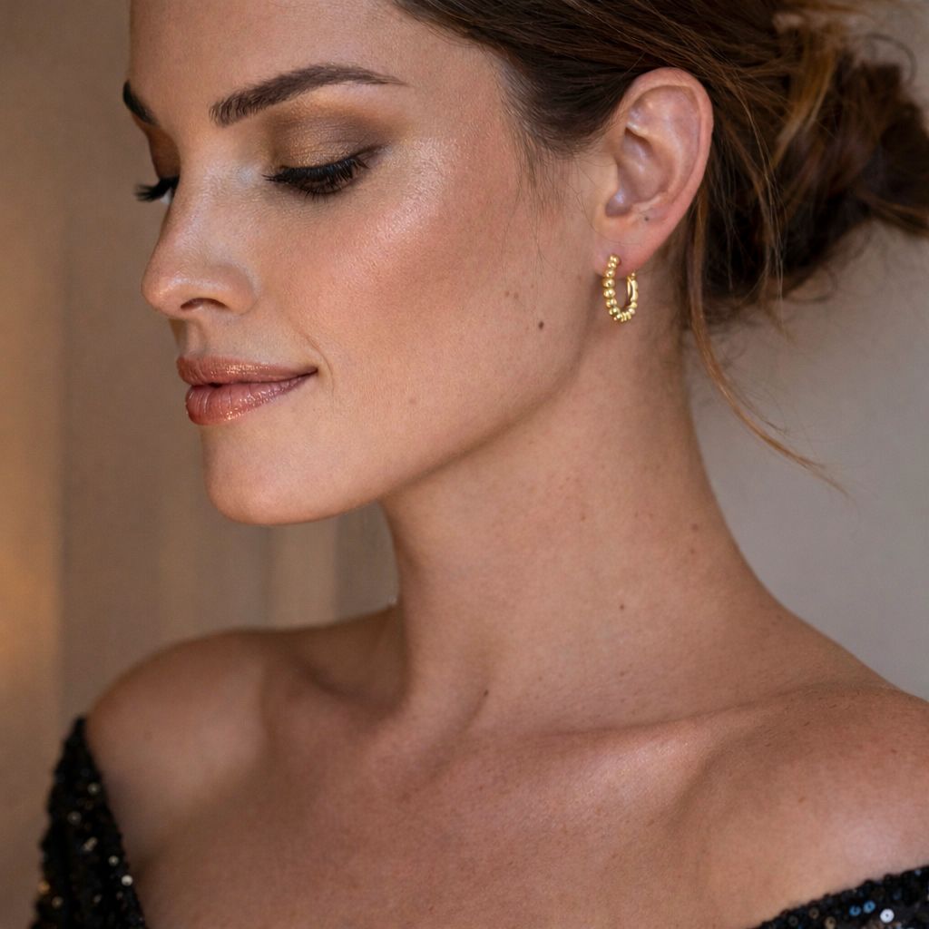 The Monaco Glow Hoops feature polished gold beaded detailing that catches the light beautifully, adding subtle texture and dimension. Elegant yet effortless, they’re the perfect everyday luxury — easy to stack, easy to style, and designed to glow from day to night.