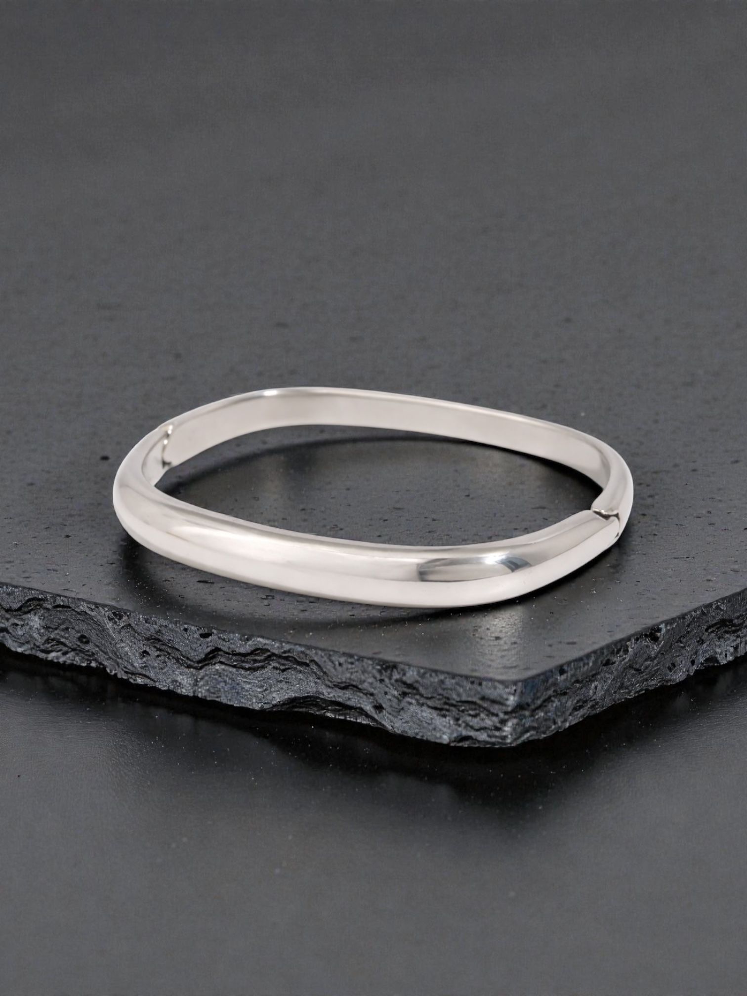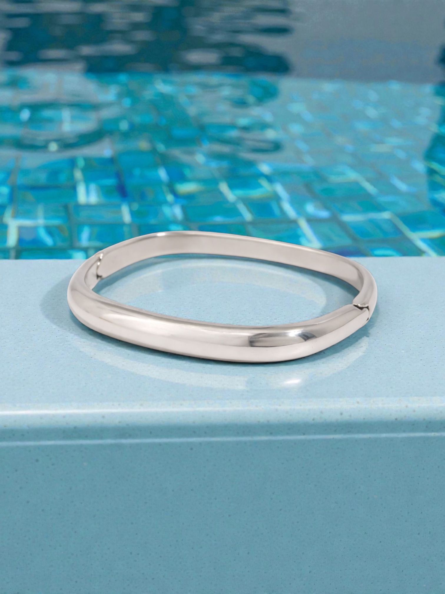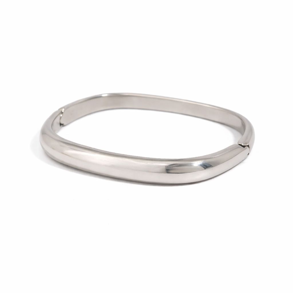 A sleek silver bangle with a softly squared silhouette for a modern edge. Polished and sculpted, the Monaco blends clean lines with subtle structure — a refined statement designed for effortless everyday wear.