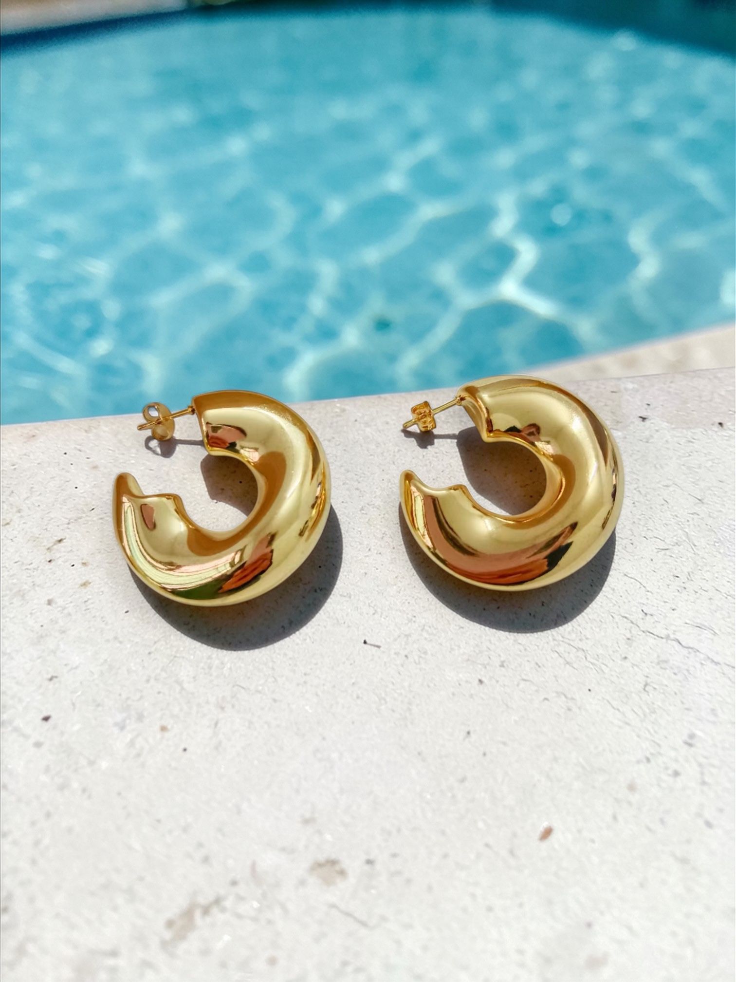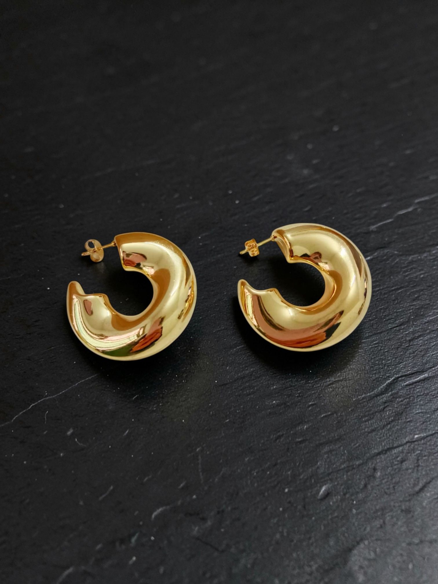 Make a statement with the Sienna Bold Hoops — chunky, high-shine gold earrings designed to elevate any look.