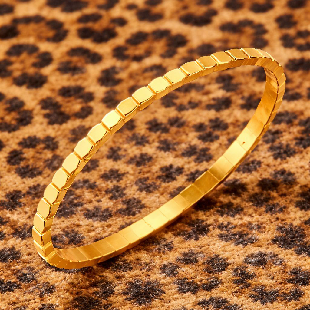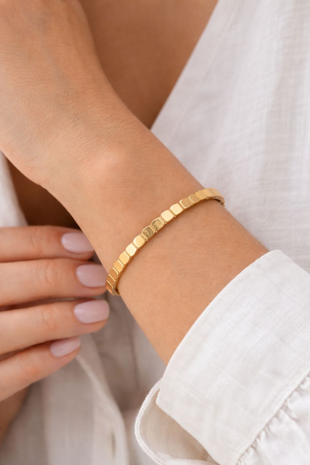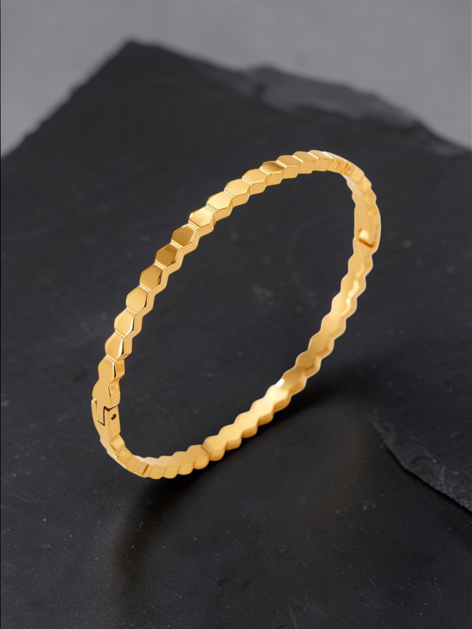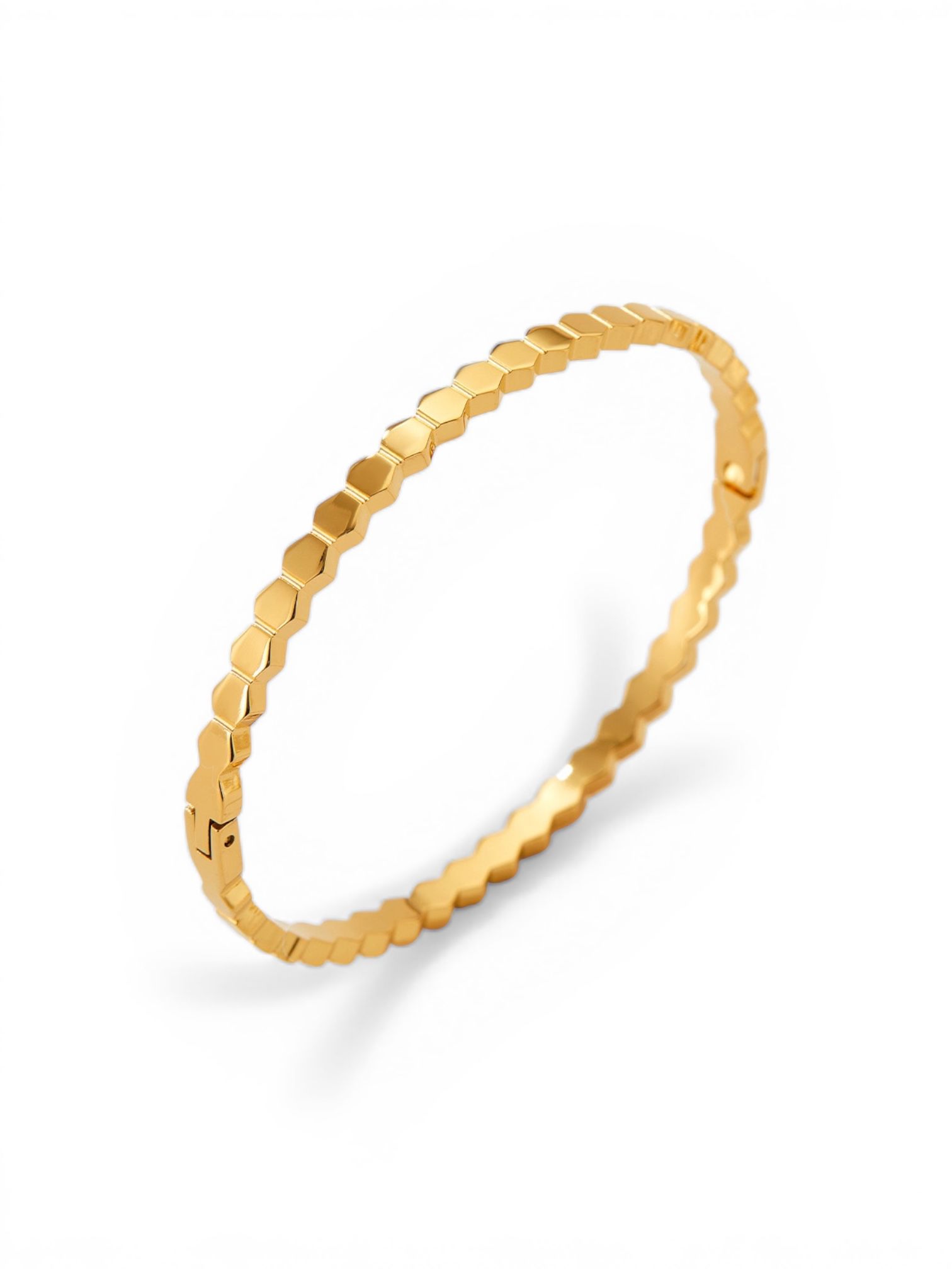 A sleek statement of understated luxury, the Solara Link Bangle features a refined geometric link design with a polished gold finish.