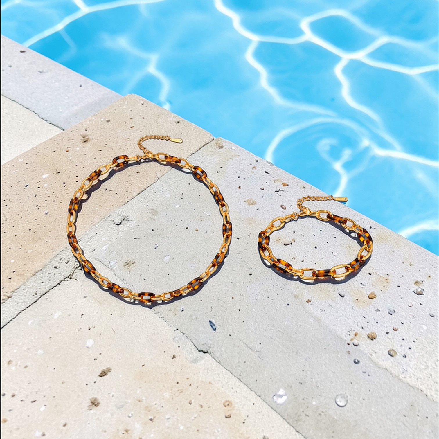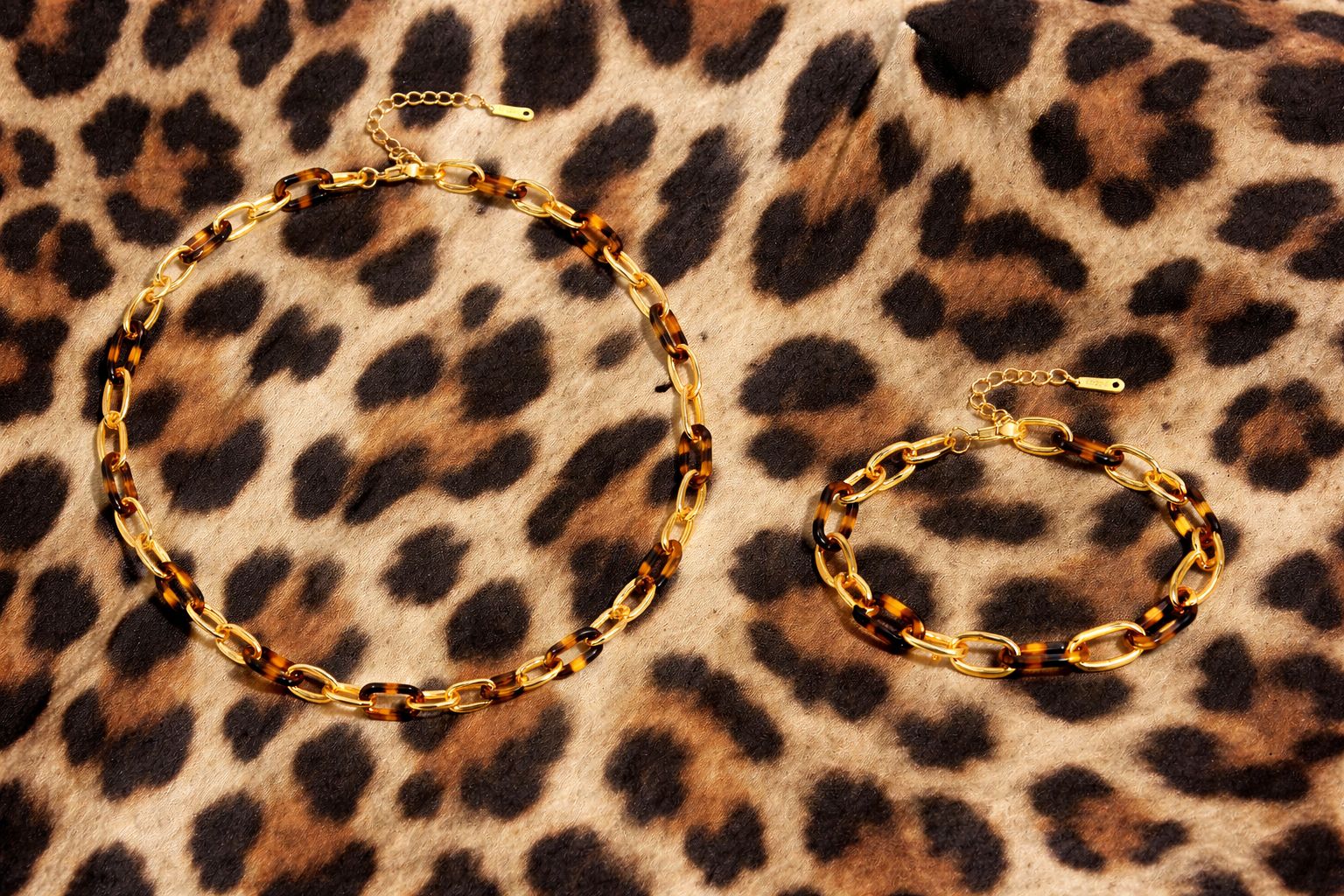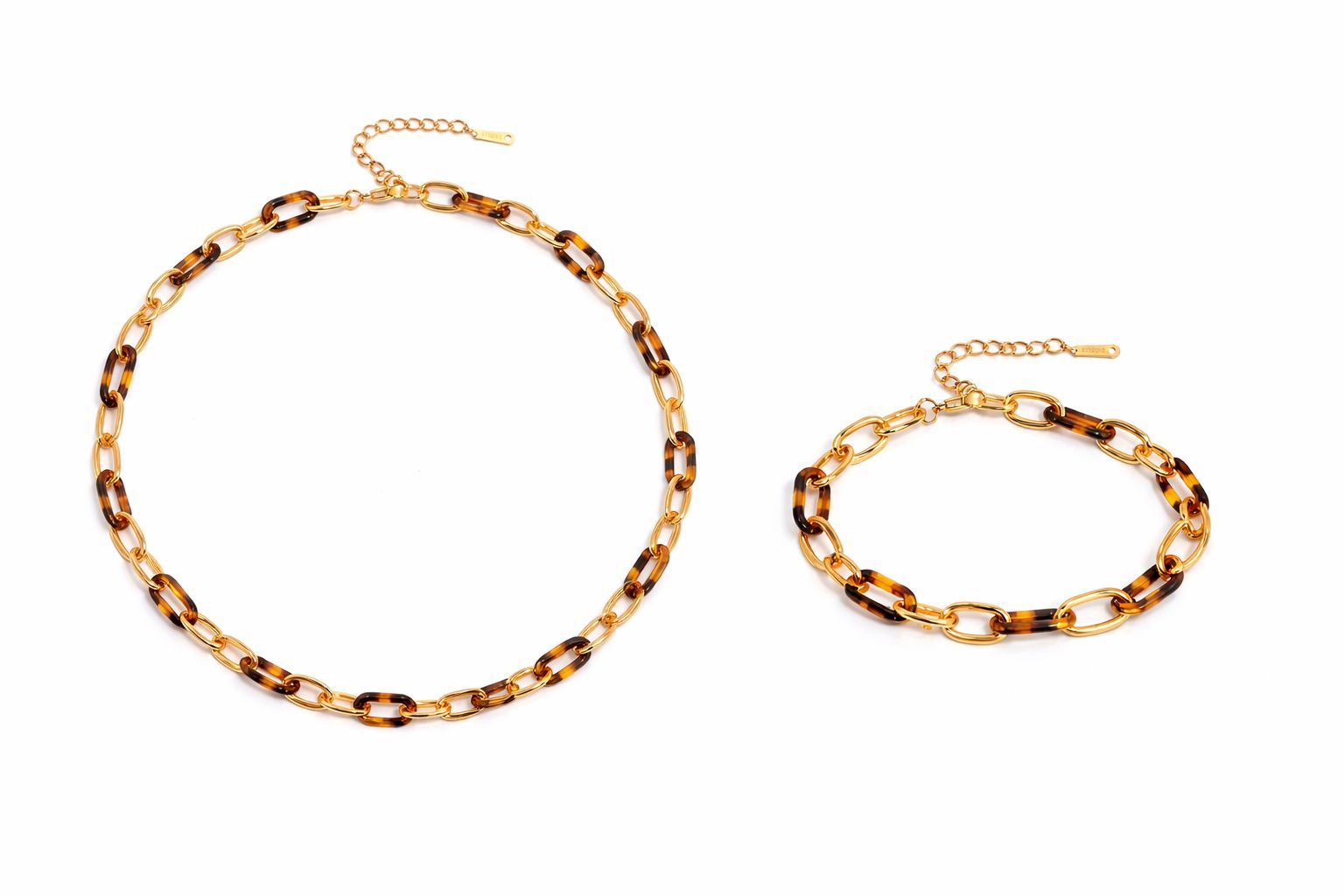 A bold yet refined statement set featuring polished gold links intertwined with rich tortoiseshell accents.