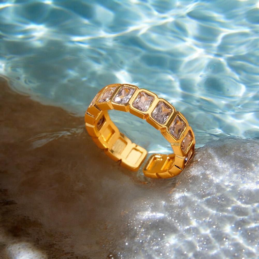 The Solara Spectrum Ring blends colour and structure with its clean, modern silhouette and polished gold finish. Designed to make a statement while remaining effortlessly chic, it’s perfect worn solo for a pop of colour or stacked for a more expressive, fashion-forward look.